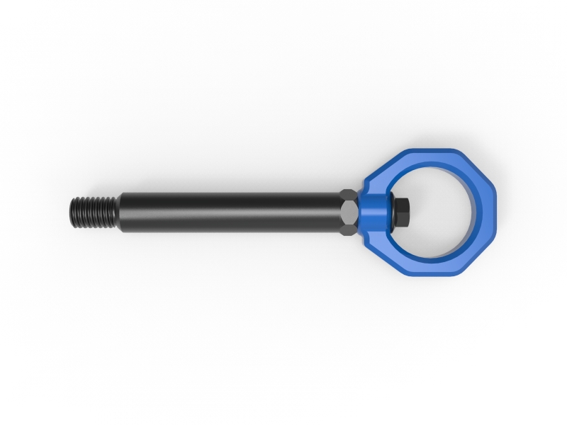 Add aggressive styling, and useful functionality to your G87 M2 with aFe Control’s tow hook. Its sleek design not only looks great but is strong enough to safely winch your car onto a tow truck or get towed trackside if the need arises. Our tow hook can be installed in the front or rear of the vehicle. Our BMW specific CNC machined stem and loop is made of 4130 steel. The stem is black zinc coated for corrosion resistance. The loop is powder coated Blue (Black, Gray, and Red are available). This is not a universal tow hook. The stem was specifically designed for the G87 M2 and the length was carefully determined to fit both front and rear bumper. Both the stem and bolt threads are pre-coated with Vibra-tite threadlocker. This keeps your tow hook from loosening due to vibration. The special threadlocker is designed to remain flexible, removable, and reusable.