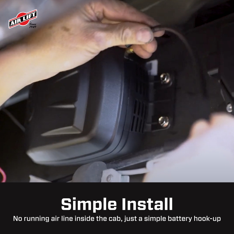 Offering easy and convenient air pressure adjustment for any brand of aftermarket air spring, the WirelessOne on-board air compressor system from Air Lift is ideal for any air spring user. With the included handheld controller and NEW wireless app, inflation and deflation has never been more simple. With air spring equipped vehicles, adjusting the air pressure has been an inconvenience -- find a gas station with an air compressor, then fiddle with Schrader valves until the pressures are equalized. Air Lift looked to eliminate that hassle with WirelessOne, making every part of the process simple and fast, starting with installation. WirelessONE is a single path system, meaning that both air springs will inflate or deflate to the same pressure. The air springs are inflated and deflated by an external air compressor with either one or two Schrader valves, attached to one or two air springs. Between the included wiring harness, installation hardware and a fully illustrated instruction manual, WirelessOne will be up and running in no time. Installing the system takes only an hour, with no air line or wiring needing to be routed through the cab of the vehicle, as well as no need to tap into the ignition wire. By eliminating this necessity, Air Lift removed the need to drill into the firewall and the need to work with live wires. When installed, the system allows you to quickly and easily adjust the air pressure in the air springs to accommodate changes in the vehicle's load. With the second generation of WirelessOne , Air Lift created a mobile app for both iOS and Android devices, on top of the included wireless controller, allowing you to connect with the Bluetooth -enabled manifold easily. As the leader in air suspension products for over 75 years, Air Lift is committed to delivering quality parts that last.
