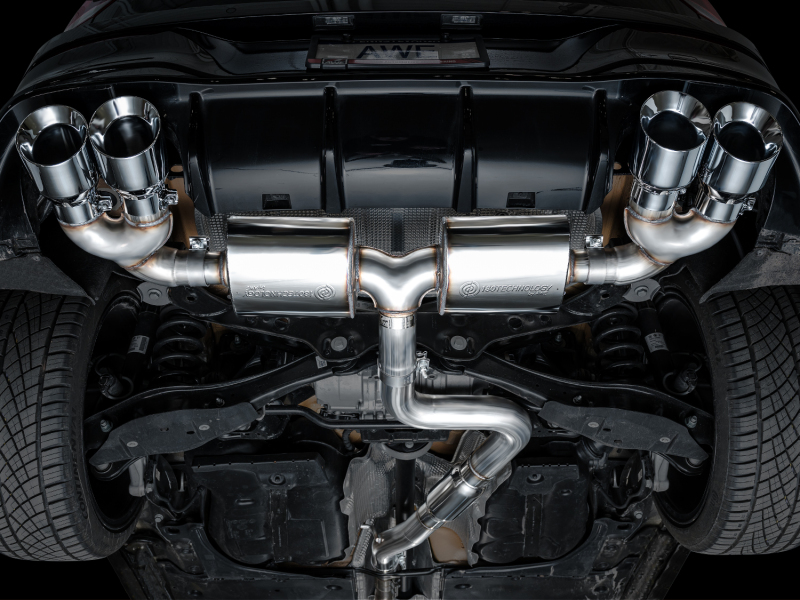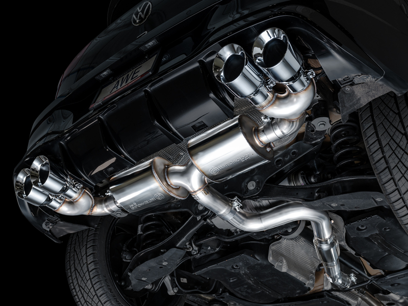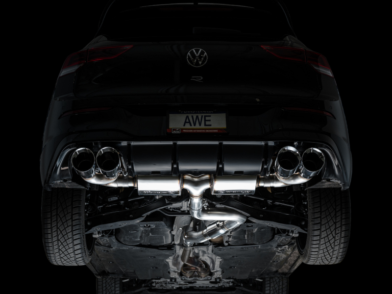 Introducing the first AWE Exhaust for the VW Golf R to ever feature patented drone-canceling 180 Technology®. The Touring Edition features a 3” inlet complete with an adapter to accommodate the factory downpipe perfectly while leaving an open 3” connection. In the rear resides AWE’s patented 180 Technology® resonators responsible for maintaining straight-through performance while decimating drone-prone frequencies. Thanks to the design and construction of 180 Technology® resonators, the internals will not break down and degrade over time causing tone change. Just full-bodied, drone-free rumble for life from the point of installation. This configuration provides the best ratio of interior refinement and exterior rumble on the market. No valves needed. Switch driving modes and the exhaust will render the same result as a vavled exhaust. It's the do-it-all exhaust for every day drivers. Comes complete with quad 4.5" slash-cut, double-walled tips in chrome silver.