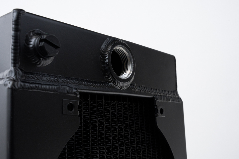 After more than 9 months of R&D, and input from some of the best import drag race builders in N. America, CSF has brought to the sport compact market the most advanced drag race cooling system ever developed. Introducing the KING Cooler. For the longest time, buying a drag-race radiator was a tasking process. End users had to custom order the unit based on their connection and mounting specifications. Typically, this process would take 2-4 weeks and be rather expensive. CSF has eliminated this hassle by making sure that these units are in stock in both of CSF's coastal warehouses and on the shelves of distributors and supporting dealers around the world. Universal Fit Allows for Mounting in Multiple Different Configurations. The Triple-Pass Flow Structure allows the coolant to flow across the core of the radiator three times before exiting for lowest outlet temperatures possible. This radiator features a 2-Row core with CSF's exclusive B-Tube Technology: Unlike a regular oval-shaped "O" type radiator tube, CSF uses a specially engineered tube in the shape of a "B". These "B-tubes" are carefully formed and then brazed over the seam to seal. CSF is able to use thinner and lighter aluminum material (with better cooling efficiency) because this design is actually stronger than normal "O" shape tubes that are welded. The design (inlet in the middle of the tube that is seam brazed) increases the heat transfer surface area of the tubes by approximately 15% over regular tubes - producing the efficiency of two smaller tubes vs. one large tube within the same space criteria. With "B-tubes" you are able to get "dual liquid laminar flow". CSF also uses ultra efficient multi louvered fins that are carefully and precisely aligned to maximize airflow through each radiator core. Fin specifications are carefully measured and calculated for each application, and tested for maximum heat rejection efficiency in our wind-tunnel lab.
