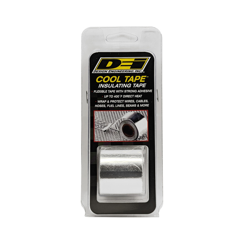 Cool Tape(TM) is a flexible and super strong self-adhesive thermal insulating tape capable of protecting up to 2000°F of radiant heat. Made of one mil aluminized material bonded to a woven glass fiber heat resistant matting, Cool Tape(TM) is a ultra light weight heat reflective solution for wrapping wires, cables, hoses, fuel lines, covering seams and many other uses. Withstands direct heat up to 400°F Use to secure panels, seal air boxes, wrap wiring & more Strong self-adhesive backing Perfect for giving Reflect-A-Cool, Heat Screen and Floor & Tunnel Shield II a finished edge look! *DO NOT apply directly to exhaust components.
