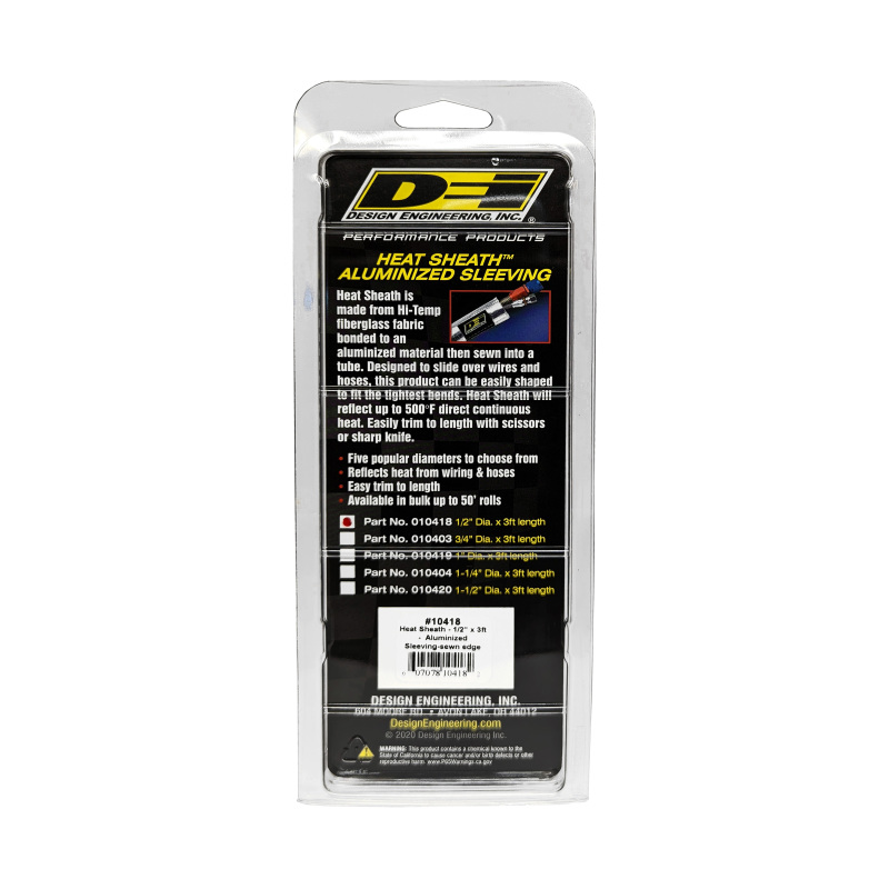 DEI Heat Sheath 1/2in I.D. x 3ft - Aluminized Sleeving - Sewn Edge - 10418