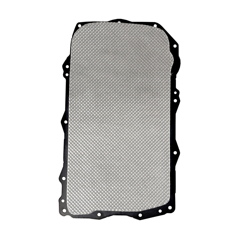 Adhesive backed transmission pan heat shield installs between the transmission pan and cross over pipe on JL Wranglers & JT Gladiators with 850RE 8 speed transmissions. It blocks radiant heat from the exhaust, preventing heat soak into the transmission pan and fluid. The result—cooler transmission temps, improved performance, and longer component life.