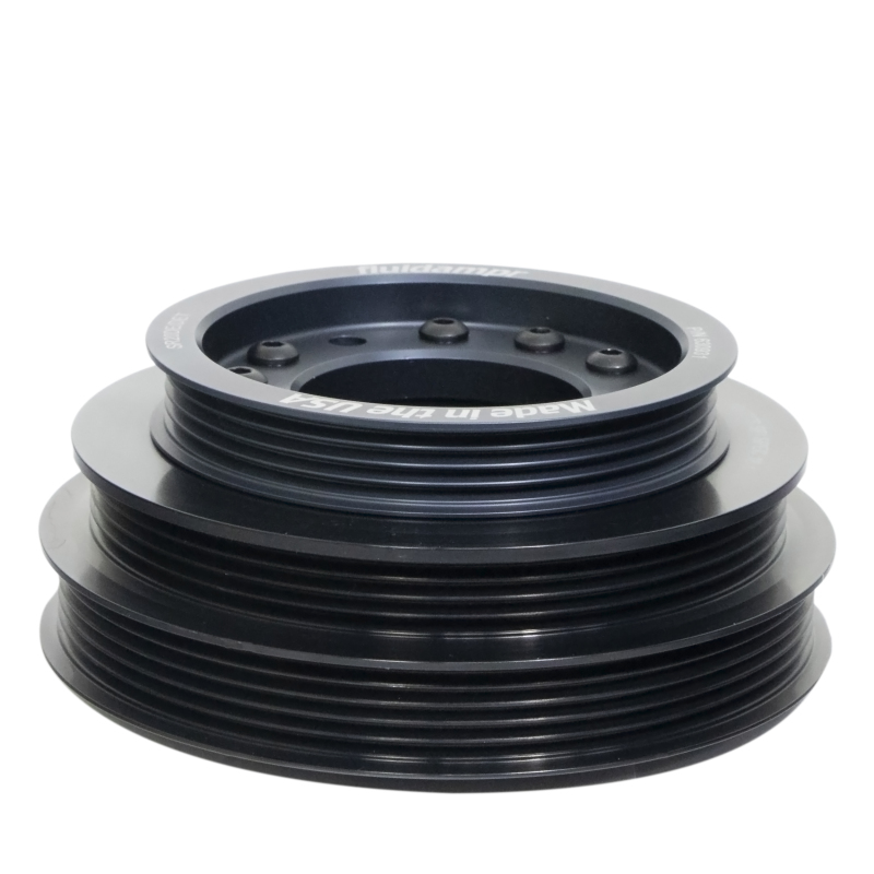 Protect your engine. Modifications can compromise your stock harmonic balancer. Install a Fluidampr performance damper early for best durability. Superior viscous damper design controls harmful torsional vibration across the entire rpm range. Reduce wear on engine components. Reduce risk of crankshaft failure. Improve timing. Unleash lost torque and horsepower. Precision CNC machined and balanced high-grade steel components. Corrosion resistant black zinc finish with engraved timing marks. No maintenance required. Trusted by leading engine builders worldwide. SFI 18.1 certified. Made in USA.