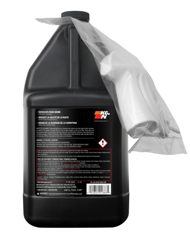K&N 99-0635 is a 1 US gallon bottle of Power Kleen air filter cleaner. K&N Air Filter Cleaner is the only cleaner recommended to clean K&N cotton air filter elements. K&N Power Kleen will bring your K&N oiled cotton air filter to like new condition. It works to dissolve the dirt build up and old filter oil, then it can be washed away with water. The use of any other cleaning solution can void the filter's warranty. It is so good at cleaning greasy dirt and grime that it can also be used as an industrial strength degreaser by removing deposits from most surfaces including cotton air filters, painted surfaces, chrome, plastic and more!