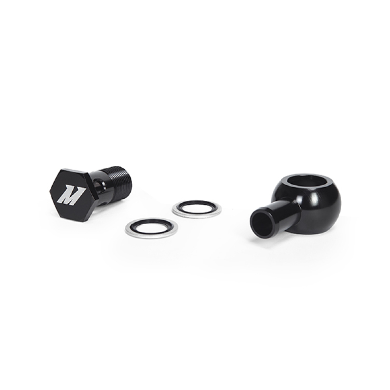 Made from 6061 aluminum, the black anodized Mishimoto Banjo Fitting with Bolt has M20 x 1.5 and 5/8in straight connections, two dowty oil seals, and the Mishimoto Lifetime Warranty.