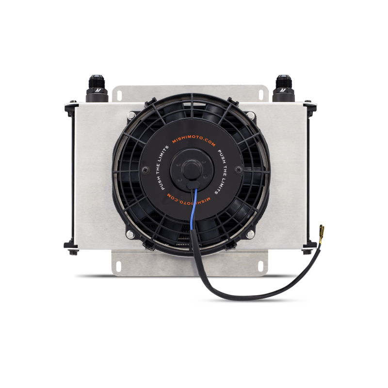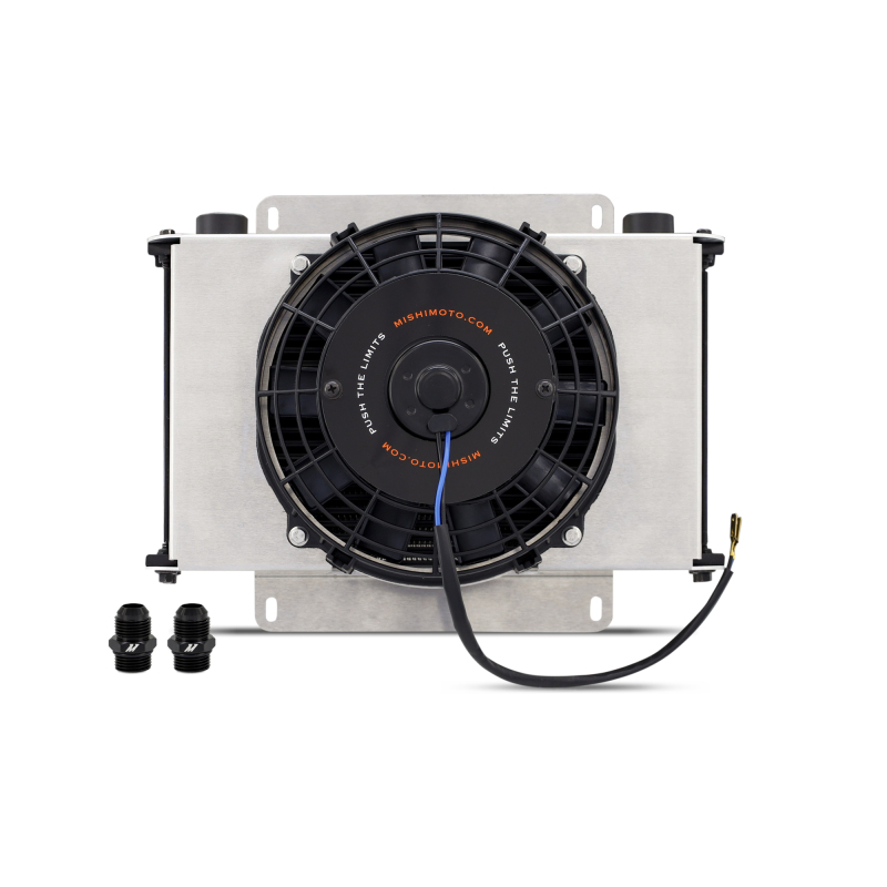 Mishimoto’s fully assembled universal 25-row oil cooler kit is an ideal product for the advanced cooling of your vehicle. Rated for a maximum pressure of 120 PSI, our kit includes a universal oil cooler, 8” slim fan, aluminum fan shroud mounting brackets, two -10 AN fittings, and all necessary hardware, making it an ideal product for popular cars, trucks, and even electric vehicles. This all-aluminum cooler has female ports to best adapt to a wide variety of fittings (link to MMFT-ADA-10) to bring performance cooling to your ride.Prevent premature failures by getting ahead of overheating with this universal replacement kit, backed by Mishimoto’s lifetime warranty